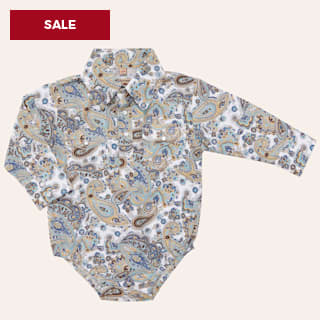 Rafter C Infant Boys' White Tan & Blue Paisley Print Long Sleeve Pearl Snap Western Onesie
