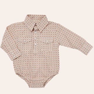 Rafter C Infant Boys' Cream Geo Print Long Sleeve Pearl Snap Onesie