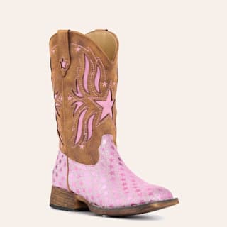 Roper Toddler’s Pink Glitter and Brown Starlet Leather Short Square Toe Cowboy Boots