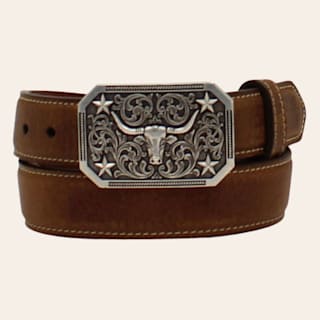 3D Belt Co. Boys' Brown Leather Longhorn Buckle Belt