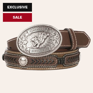 Cavender's Children's Brown with Lacing Conchos and Oval Bull Rider Buckle Western Belt
