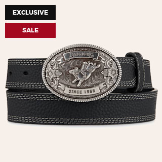 Cavender's Kids' Black with Oval Bullrider Logo Buckle Western Belt