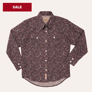 Rafter C Boys' Chocolate Paisley Print Long Sleeve Pearl Snap Western Shirt
