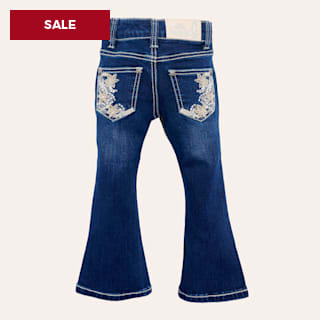 Rockin' C Girls' Dark Wash Floral Embroidered Bootcut Jeans