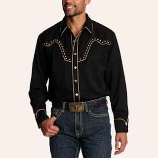 Scully Men's Black & Gold Embroidered Long Sleeve Diamond Snap Western Shirt
