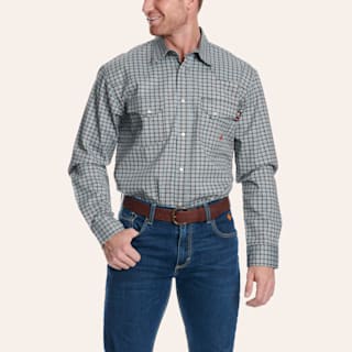 Forge Men's Slate Green Plaid Print FR Long Sleeve Shirt