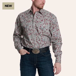 Stetson Men's Gray & Red Paisley Print Long Sleeve Pearl Snap Western Shirt