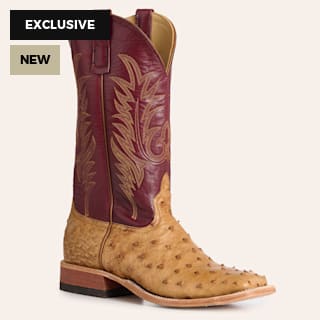 Anderson Bean Men's Umber & Sangria Full Quill Ostrich & Kidskin Wide Square Toe Cowboy Boots