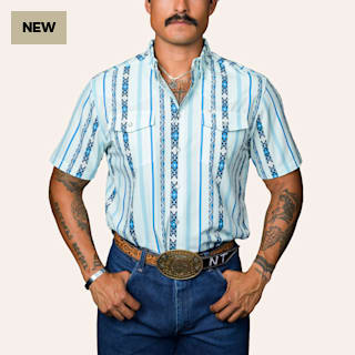 Ferrell Men's Post Blue Aztec Stripe Print Pearl Snap Western Shirt