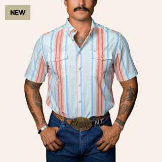 Ferrell Men's Harrison Blue & Salmon Stripe Print Pearl Snap Western Shirt