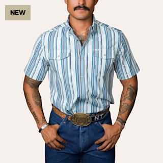 Ferrell Men's James Light Blue Stripe Print Pearl Snap Western Shirt
