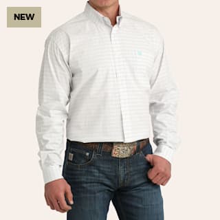 Cinch Men's White Plaid Print Long Sleeve Shirt