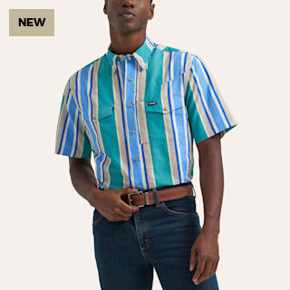 Wrangler ATG Men's Blue Daphne Stripe Print Pearl Snap Western Shirt