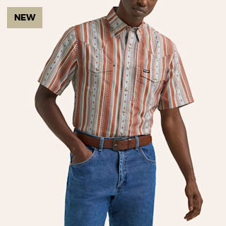 Wrangler ATG Men's Copper Aztec Stripe Print Pearl Snap Western Shirt