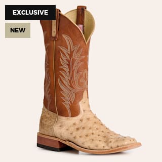 Anderson Bean Men's Tan & Brown Vintage Bruciato Full Quill Ostrich Wide Square Toe Cowboy Boots