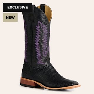 Anderson Bean Men's Black Caiman Belly Stitched Square Toe Cowboy Boots