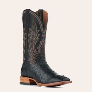 Ariat Men's Showboat Black TekStep Full Quill Ostrich Wide Square Toe Exotic Cowboy Boots