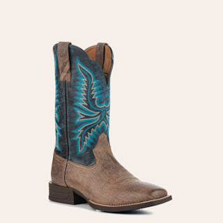 Ariat Men's Brush Creek Stone and Navy Wide Square Toe Shock Shield Cowboy Boots