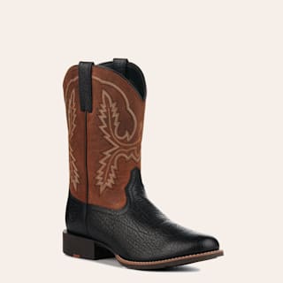 Ariat Men's Sport Stratten Black and Weathered Chestnut Round Toe Cowboy Boots