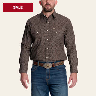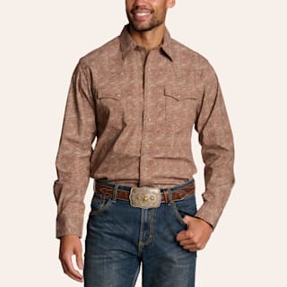 Rafter C Men's Brown Paisley Print Stretch Long Sleeve Pearl Snap Western Shirt