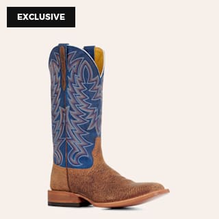 Cavender's Men's Daingerfield Cognac & Blue Wild Boar Wide Square Toe Cowboy Boots