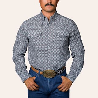 Wrangler Classic Men's Blue & White Geo Print Western Shirt