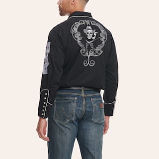 Scully Men's Black Old School Skulls Guns & Cards Embroidery Long Sleeve Western Shirt