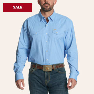 Rafter C Men's Sky Blue Pinstripe Print Pearl Snap Long Sleeve Western Shirt – Big & Tall