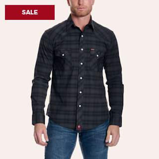 Rafter C Men’s Charcoal Plaid Print Pearl Snap Western Shirt