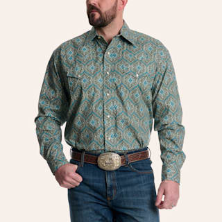 Stetson Men's Olive & Turquoise Paisley Print Long Sleeve Pearl Snap Western Shirt