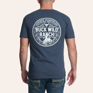 Cowboy Hardware Men's Blue Buck Wild Ranch Logo Graphic T-Shirt