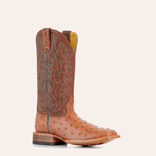 Cavender's Men's Brandy Brown Full Quill Ostrich Wide Square Toe Cowboy Boots