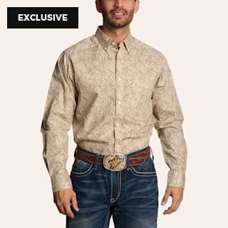 Ariat Men's Trevon Tan Paisley Print Long Sleeve Shirt