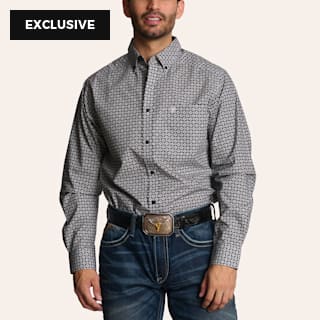 Ariat Men's Fleetwood Black & White Geo Print Long Sleeve Shirt