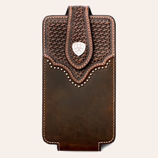 Ariat Chocolate Leather & Basket Weave Silver Stud Accent Large Cell Phone Case
