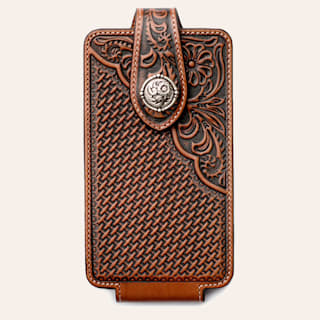 Ariat Chocolate Leather Basket Weave Tooled Large Cell Phone Case