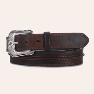 Cavender's Men's Dark Brown Leather with White Stitching Western Belt