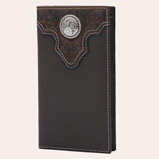 Ariat Chocolate Brown with Tooled Overlay and Circle Concho Leather Rodeo Wallet / Checkbook Cover