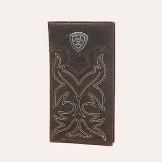 Ariat Brown with Brown Overlay Boot Stitch & Shield Leather Checkbook / Rodeo Wallet