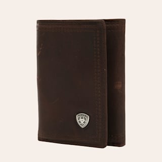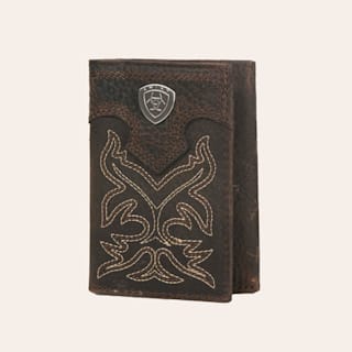 Ariat Brown with Boot Stitching Leather Tri-Fold Wallet