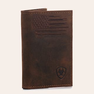 Ariat Men's Chocolate Flag & Shield Logo Trifold Wallet