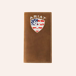 Ariat Tawny-Brown Leather & Flag Shield Rodeo Wallet
