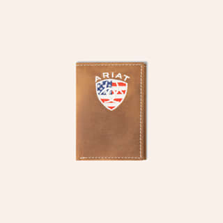 Ariat Tawny-Brown Leather & Flag Shield TriFold Wallet