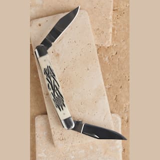 Ariat Large 2 Smooth Blade 4" Burnished Natural Bone Handle Muskrat Folding Knife