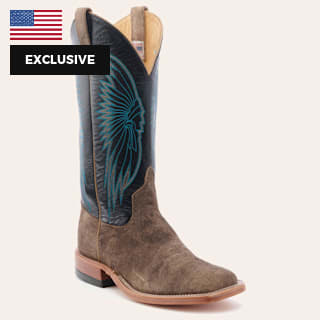 Anderson Bean Men's Horsepower Distressed Tobacco & Blue Wide Square Toe Cowboy Boots