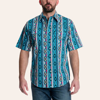 Wrangler Men's Checotah Turquoise Aztec Print Pearl Snap Western Shirt