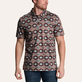 Rock & Roll Denim Men's Brown & Tan Aztec Print Polo Shirt