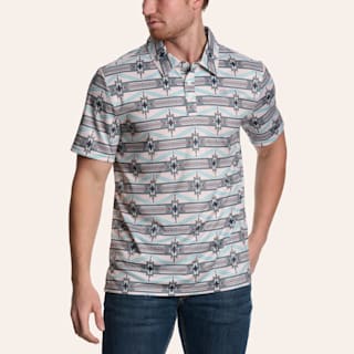 Rock & Roll Denim Men's White & Gray Aztec Print Polo Shirt