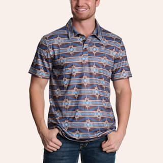 Rock & Roll Denim Men's Brown & Blue Aztec Print Polo Shirt