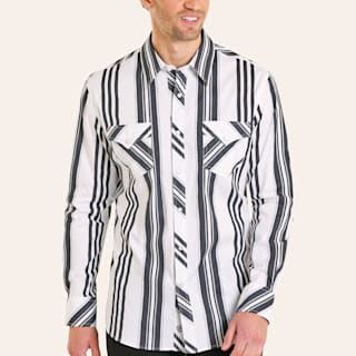 Rock & Roll Denim Men's Black & White Retro Stripe Print Long Sleeve Pearl Snap Shirt